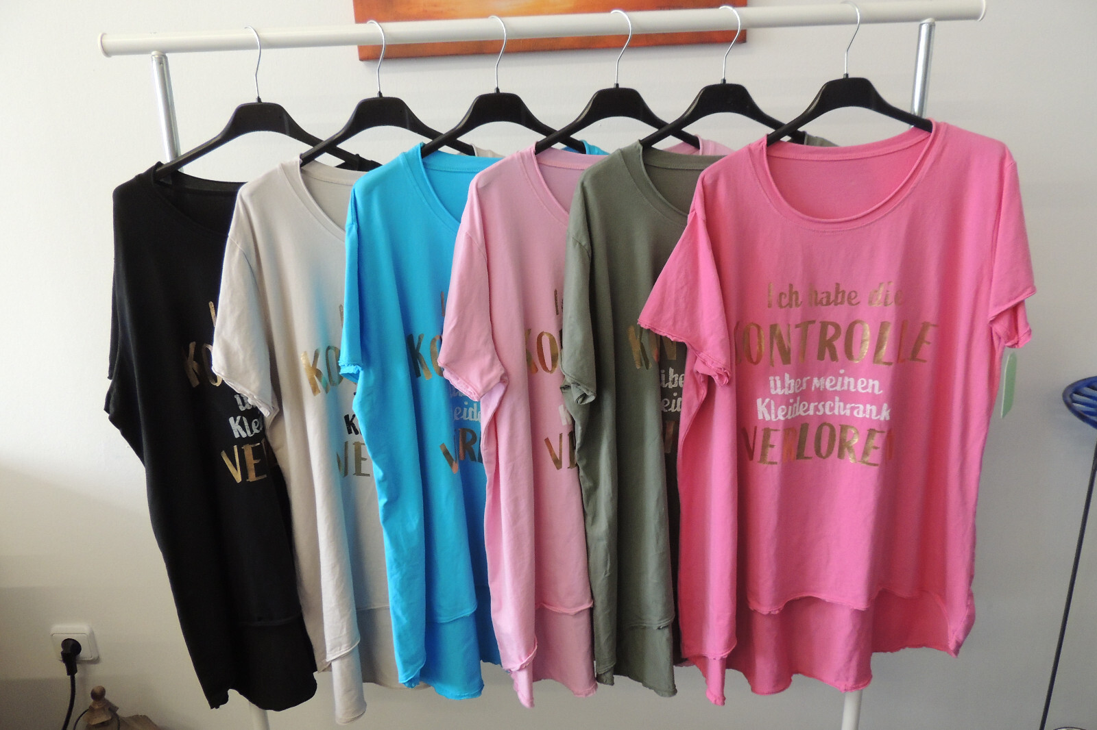 T-Shirt Tunika Hängerchen Made in Italy Kontrolle Kleiderschrank Spruch 46,48,50