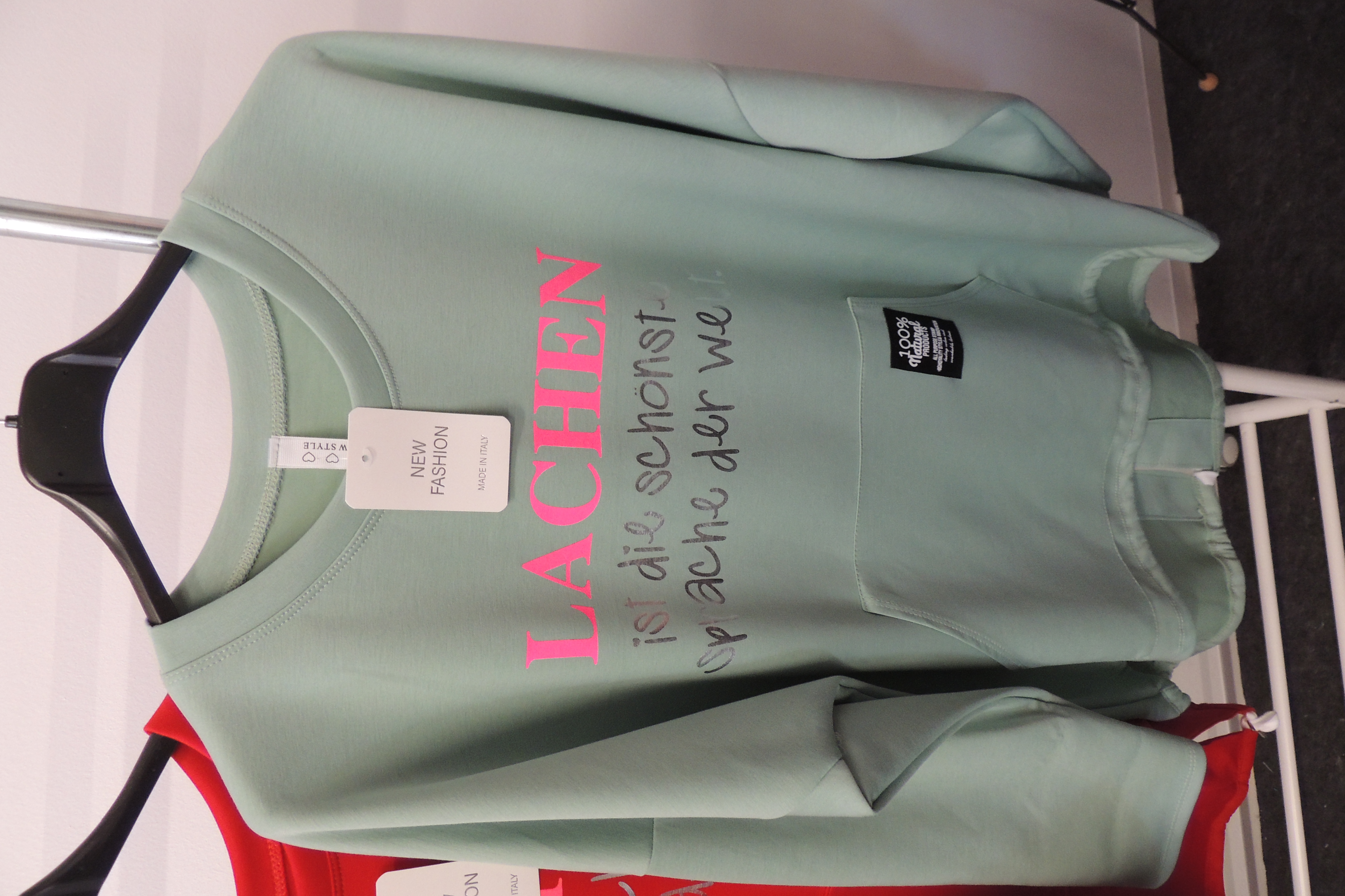 Shirt Tunika Hängerchen Spruch Lachen ist Softtouch Made in Italy 44,46,48